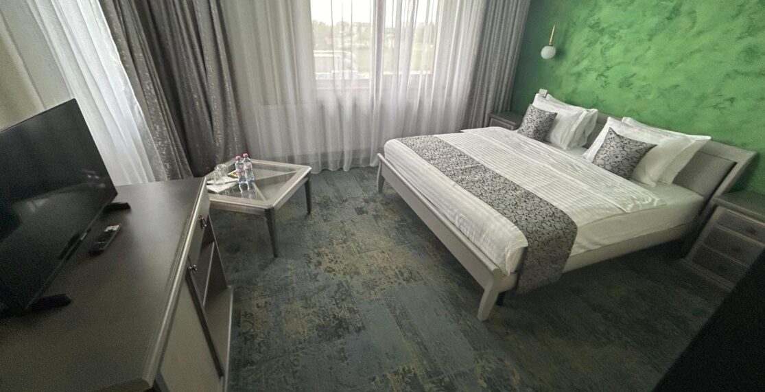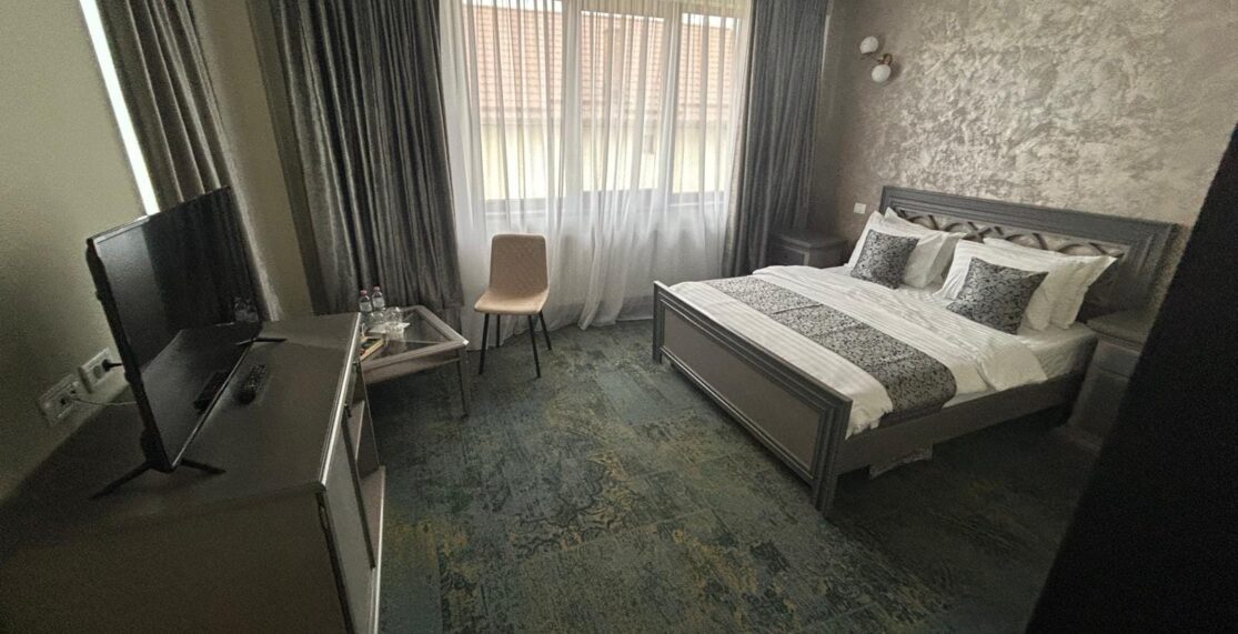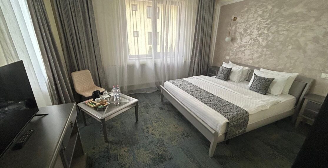 Camera matrimonială Harmony Hall oferă lux și confort modern, cu pat king size, Smart TV, minibar și toate facilitățile necesare pentru un sejur de neuitat.