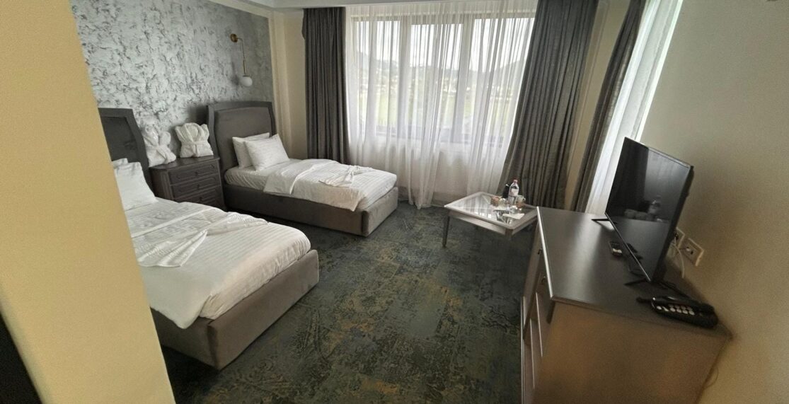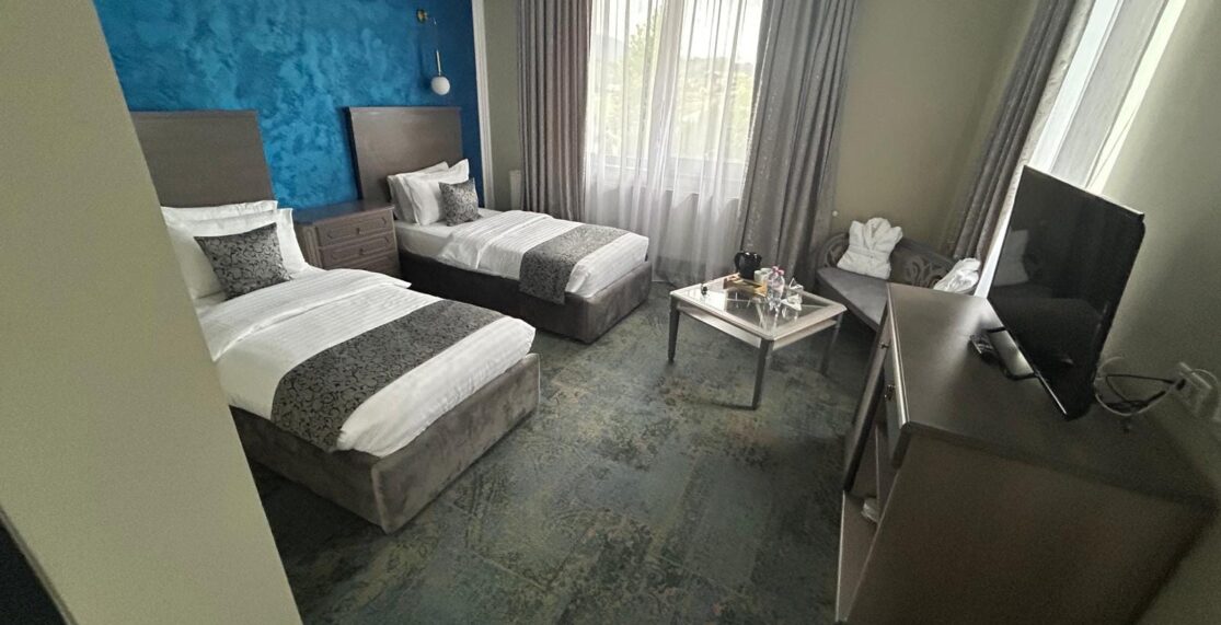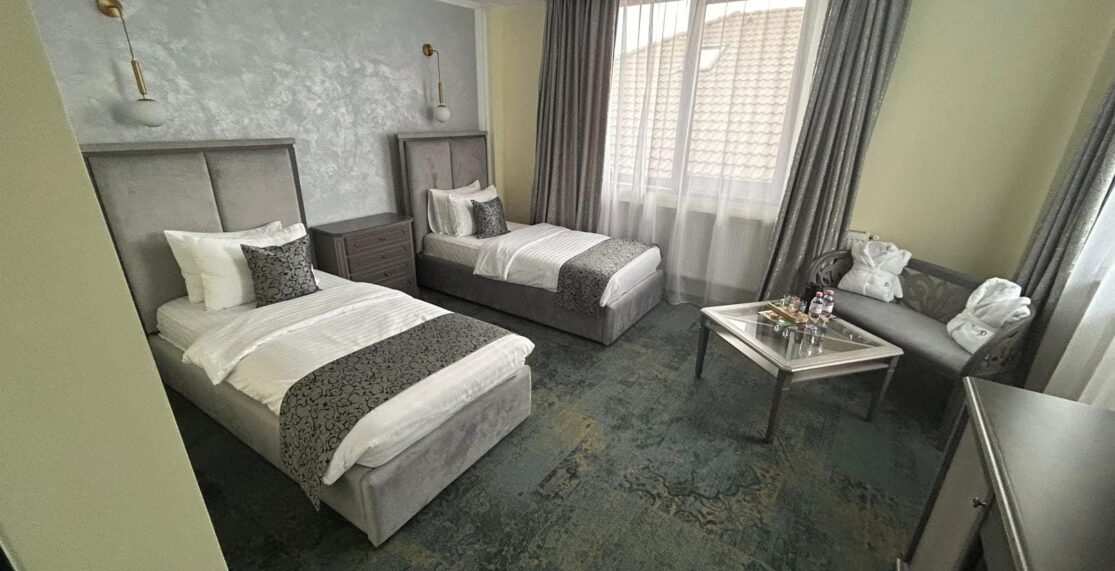 Ideală pentru oaspeții care preferă spațiul individual, oferind două paturi single confortabile într-un cadru elegant și modern.